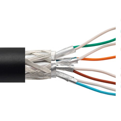 • Double shielded Category 6 rated, unterminated bulk cable built with overall braid shield around individually shielded twisted pairs (S/FTP)