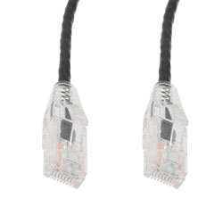 The TRD695ACL-BLK-05F cable assembly with RJ45 connectors has a CM certified PVC jacket that fulfills today's burn rating and safety criteria. This Category 6a certified Ethernet cable from L-com has 28 AWG stranded conductors, making it flexible and easy to install in tight locations. The slim design of 0.5 feet Ethernet cable greatly promotes air flow and reduces stress, especially on dense patching or confined space applications such as those found around servers, data centers, racks, panels and cable trays. This black cable is perfect for bundling and for applications that require a small, flexible cable.