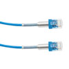The L-com TRD630A-DS-BLU-50F Category 6a double spring slim Ethernet cable assembly is intended for use in high-density environments where space is limited. This 10 gigabit Ethernet cable features RJ45 male plugs with spring boots and can be used to reduce congestion in high-density environments like data centers and rack panels. Our blue Ethernet patch cord is 30 AWG stranded and takes up less than a half of the space of a standard 24 AWG patch cable.
