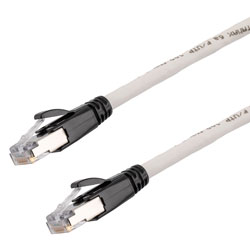 This white Ethernet patch cable from L-com has 26AWG stranded relaxed-style conductors for flexibility and uses an aluminum polyester foil shield for protection against EMI and RFI. The relaxed stranded conductors and spline-less design of this TRD626ASR-WHT-15F patch cord make it more flexible than a typical Cat6a cable. This Ethernet patch cord can handle a data speed of up to 10 Gbps. Our Ethernet patch cable assembly has a diameter of 0.233 inches.