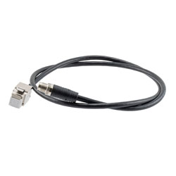 L-com’s TRG625-C6B-1M is a Category 6a 10gig economy cable that allows you to plug a normal network cable with RJ45 connectors into an M12 cable. This cable is terminated with an M12 8-position (pole) X-code male to a standard 8x8 RJ45 female connector. The X-code M12 connector of the cable is IP67-rated when properly mated to protect against liquids and particulate, and their secure, threaded design makes them extremely resistant to accidental disconnects.