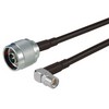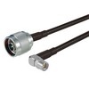 High quality fully tested Shrouded SMA Male to N-Male cable assemblies featuring high performance low loss 195-series coax cable.