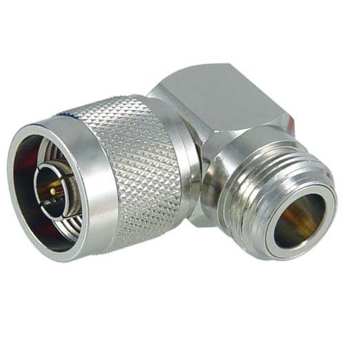 This right angle Type N male to female adapter features a compact profile ideal for limited space applications. This adapter can also be used to convert an in line to a 90 degree configuration by attaching to cable end.