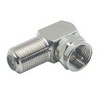 This right angle Type F male to female adapter features a compact profile ideal for limited space applications. This adapter can also be used to convert an in line Type F male cable connector to a 90 degree configuration by attaching to cable end.