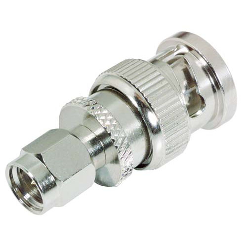 This BNC male to SMA male coaxial adapter provides the ability to connect between a BNC female and SMA female interface. Interconnection of these interfaces is often found in test lab or in field environments where devices of differing interface types are interconnected.