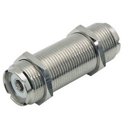 This UHF female to female feed thru bulkhead coupler provides the ability to pass a coaxial connection through a panel or bulkhead. A common use for this device is to create a connection point on either side of a wall or other obstruction.