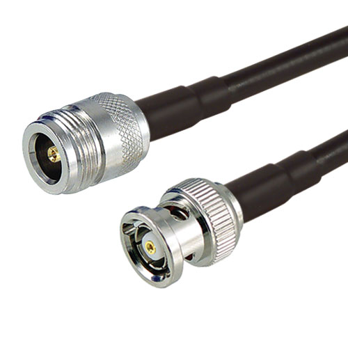 High quality fully tested Reverse Polarity BNC Plug to N-Female cable assemblies featuring high performance low loss 195-series coax cable.