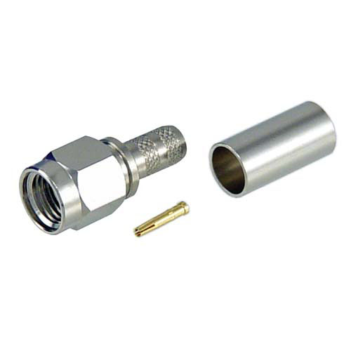 Reverse Polarity SMA Plug (RP-SMA Plug) connectors for 50 Ohm RG cable types of RG58, RG174, RG188, RG316 and 100, 195, 200, 240 and 400 Series Low Loss cables. All connectors utilize a crimp attachment process for a strong and effective attachment.