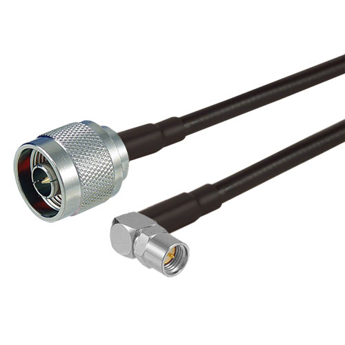 High quality fully tested Shrouded SMA Male to N-Male cable assemblies featuring high performance low loss 195-series coax cable.
