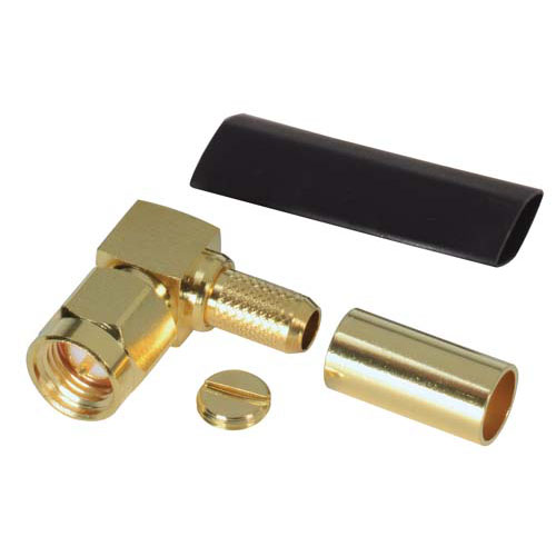 SMA Male Crimp, Right Angle for RG58U Cable (Gold)