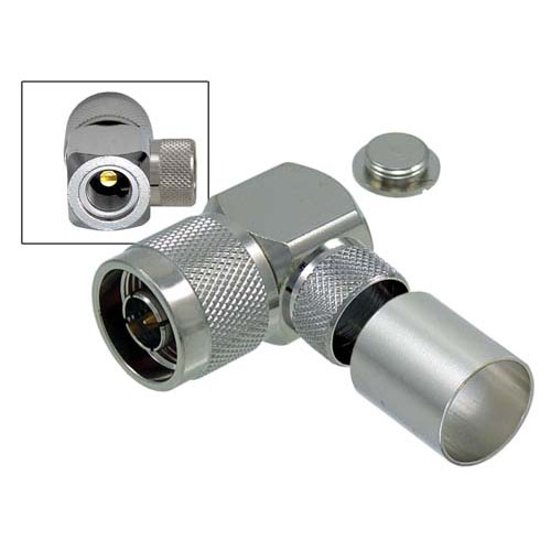 The L-com ANM-1616 is a premium Right Angle N Male Crimp Connector created for use with 600-series cable. This connector is compatible with WBC-600‚ LMR®600 and L-com CA-600 cable types. This part utilizes its gold plated center pin to reduce signal loss. This connector is ideal for Wireless, WLAN and other generic Low Loss Coaxial applications. The right angle orientation for this N Male connector allows for use in space where a normal connector will not fit. The cap on the connector allows the user to access parts otherwise not accessible on other connectors. Order online today!