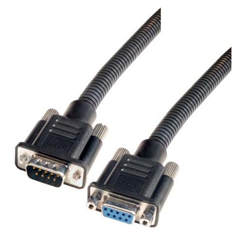 Plastic Armored DB9 Cable, Male/Female, 10 ft