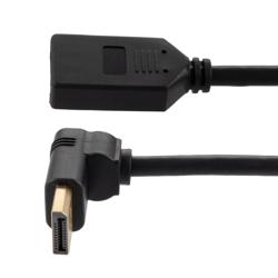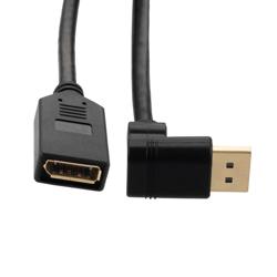 This DisplayPort female to downward angle male cable is available in a length of 1 meter. The latching DisplayPort connector on this cable reduces the risk of accidental disconnection and ensures stable transmission. This angled DisplayPort 1.4 cable assembly is suitable for digital signage, high-end computer graphics, HD PC displays, and home and professional use.