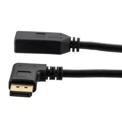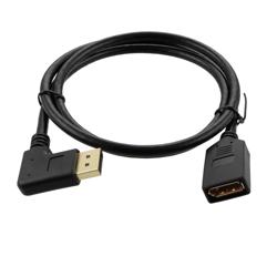 This DisplayPort female to left angle male cable comes with a PVC jacket of 0.236-inch diameter. The latching DisplayPort connector on this cable reduces the risk of accidental disconnection and ensures stable transmission. This angled DisplayPort 1.4 cable assembly is suitable for digital signage, high-end computer graphics, HD PC displays, and home and professional use.
