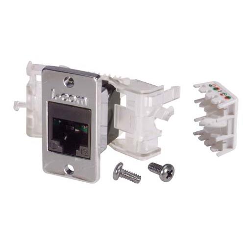 These unique Category 6 panel mount RJ45 connector kits solve the problem of mounting category rated jacks into panels that are too thick for standard keystone style systems. These connectors feature a unique tool-less termination on the back allowing for quick termination of cables. Each jack is color coded for both the EIA/TIA568 A and B standards making for a quick and painless installation. Each connector is gated to prevent unwanted and accidental disconnects. The metal flange allows secure mounting of this connector into panels thicker than 0.062". Parts are packaged as a kit, including the flange, two 4-40 screws, and one RJ45 Cat6 jack. Available in Cat5 or Cat6 versions with your choice of White, Black or Ivory. Order online today!