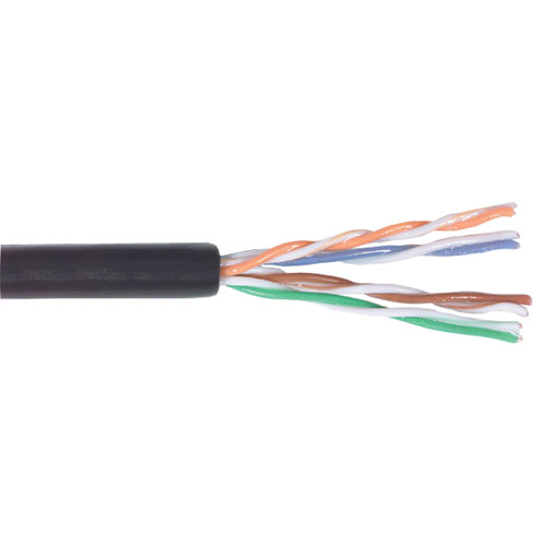 Cat6, Outdoor Ethernet Cable PE Jacket, Aerial Lashed, 4 Pr. Solid 24 AWG, 1,000ft, Black
