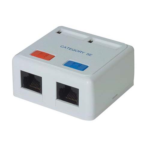 Category 5E Surface Box, RJ45 (8x8) / RJ45 (8x8) White