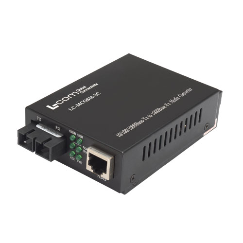 L-com's LC-MCGSM-SC gigabit ethernet media converter offer users a cost effective solution to extend their gigabit network over SC single mode Fiber optic cabling to a maximum distance up to 20km. The LC-MCGSM-SC is fully compliant with IEEE802.3, IEEE802.3U, IEEE802.3ab, 10/100/1000Base-Tx, and IEEE802.3z 1000Base-LX standards. it can be used as a standalone converter or installed into our LC-MCC14AA 14 slot Media Converter chassis. Operation status can be locally monitored through a set of diagnostic LEDs located on the front panel. The converter is powered by an external 5V DC power supply (included).