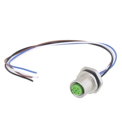• M12, 4 Position, A-Coded (single keyway) Female Panel Mountable Receptacle