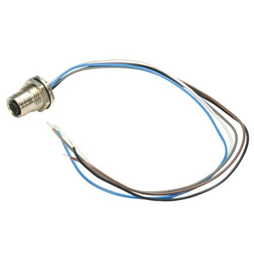 M12 4 Position A Code Female Receptacle, IP69K Rated, Front Mounting Style with 0.3m Leads