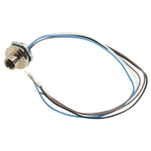 M12 4 Position A Code Female Receptacle, IP69K Rated, Rear Mounting Style with 0.3m Leads