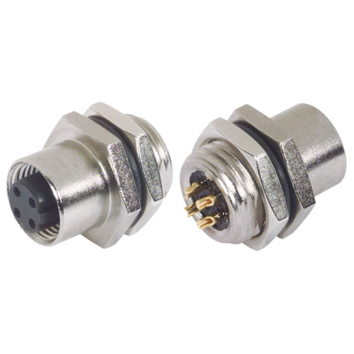L-com offers a complete line of D-Coded 4 and 5 Position M12 connector solutions for enclosure, panel and PCB applications. These quality constructed M12 connectors provide years of trouble free use in the most trying applications. These M12 connectors are offered in both male and female versions and are rated to IP68. These connectors are designed for rear mounting.