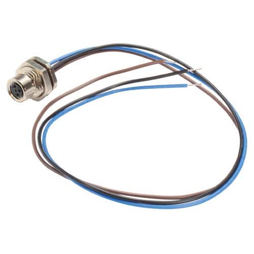 M8 3 Pole Female Receptacle, Front Mounting Style with 0.3m Leads