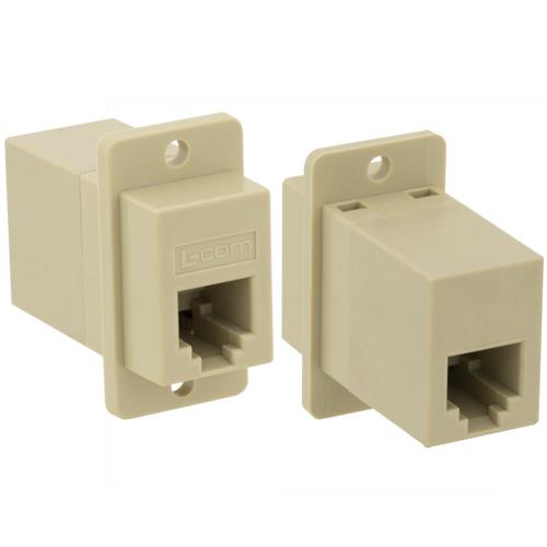 L-com's exclusive line of category 3 panel mount connectors is the perfect choice for passing modular cables through a rack panel or wall plate. The unique flange mount design accepts #4 or #5 screws for secure mounting of these couplers to any panel (purchased separately). Contacts have 30 microinches of gold plating for durability and the ivory plastic shell is UL94V-0 rated. With a category 3 rating these couplers can be used for either voice or data applications. Large volume discounts offered; Call today.