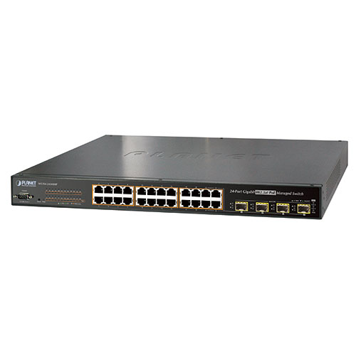 The WGSW-24040HP series is the latest generation of PLANET Managed Gigabit PoE Switches featuring PLANET intelligent PoE functions to improve the availability of critical business applications. The series provides IPv6/IPv4 management and built-in L2/L4 Gigabit Switching engine along with 24 10/100/1000Base-T ports featuring 30-watt 802.3at PoE+ and 4 Gigabit SFP slots. With total power budget up to 220W for different kinds of PoE applications, the series provides quick, safe and cost-effective Power over Ethernet network solutions to security IP surveillance for small business and enterprises.