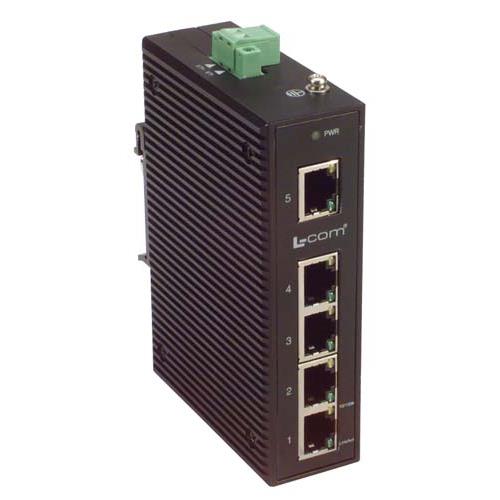 L-com's IES-Series Industrial Ethernet Switch line offers ease of deployment, cost savings and robust switching. These rugged Industrial Ethernet switches feature a combination of auto-negotiating double or triple speed ports including 10/100TX RJ45, 10/100/1000TX RJ45, 100FX SC, and 1000FX SFP as well as easy to read system status LEDs. These switches are powered by an external 24V DC Industrial Power Supply, (Sold Separately) and feature standard 35mm DIN rail mounting brackets. An IP40 aluminum alloy shell protects the part and the case's ribbed heat-removal design satisfies harsh environment and industrial requirements. The fan-less design greatly extends the mean time between failures (MTBF). The IES-series switches are unmanaged and can be installed in minutes providing industrial network connectivity for myriad applications including industrial automation, factory automation, process control networking and energy network connectivity. They support Ethernet standards such as IEEE 802.3, 802.3u and 802.3ab and compliant devices such as PLC's and media convertors as well as IP enabled meters, valves and drives.