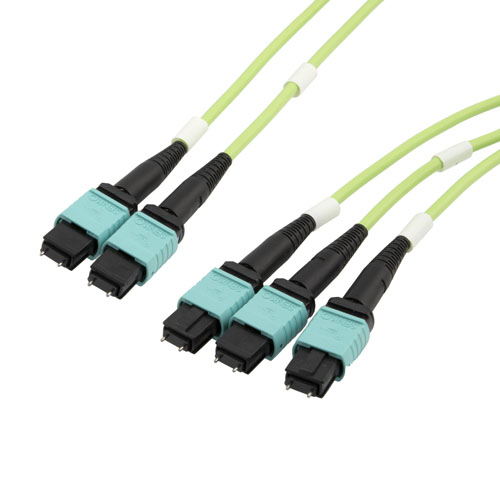 3xMPO8 w/ pins to 2xMPO12 w/ pins, OM5 50/125um Multimode, ONFR Jacket, Lime Green, 1 meter