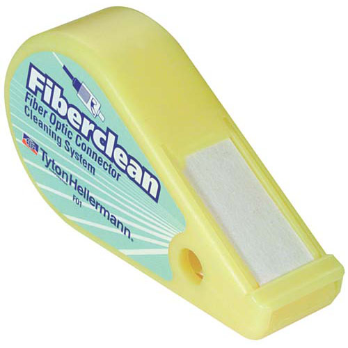 The Hellermann/Tyton Fiberclean cleaning dispenser system is convenient, economical and easy way to clean your fiber optic connectors. This hand held device exposes a portion of "ultra white", non-woven, and lint free material sufficient to clean up to 6 connectors. Used cleaning material is dispensed out of the back of the unit. Up to 400 connectors can be cleaned with a single dispenser. Large volume discount pricing is available please contact us today for details.