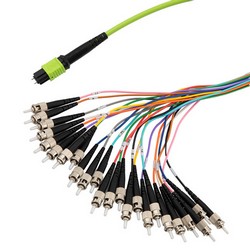 These L-com multi-fiber ribbon cables provide great advantages in size by offering up to 24 times the density when compared to the same size SC connector! Factory terminated and tested, these OM3 50/125 Multimode fiber optic cables provide significant installation time savings. A push-pull design is utilized for easy mating and removal. Fan-out assemblies with the ST connector are ideal for making connections within rack mounted or wall mounted fiber enclosures that utilize single fiber connectors. L-com's MPO connectors are fully compatible with US Conec MTP products. Use our custom cable configurator to create custom lengths today.