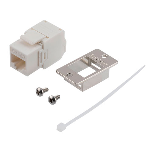 Flange Mount Kit, Category 6a 10gig Ethernet Tool-less Keystone RJ45 Jack Female, TIA568A/B, for Slim 28AWG, White