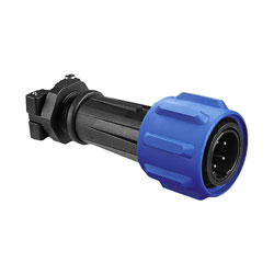 Bulgin's PXA911/07/P from L-com is a 900 series buccaneer circular power connector that mates with the PXA911 series connector. The positive and fast-acting locking ring can be turned with a gloved hand. Our circular power connector has a 13 AWG conductor size and a 58 mm diameter over the coupling ring. Make your online purchase right now to take advantage of our same-day shipping.