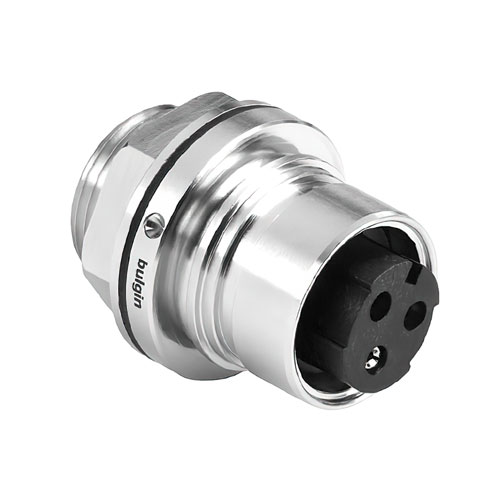 The Bulgin PXM6012/02S/ST buccaneer circular power connector can withstand cold temperatures ranging from -40°C to +120°C. Our connector includes a sealing cap (available separately) to retain the IP rating of unmated connectors. This circular power connector is designed and independently tested to IP66, IP68, and IP69K standards, making it perfect for applications where dust and water ingress must be avoided, as well as where ease of connection, space, and appearance are critical factors.