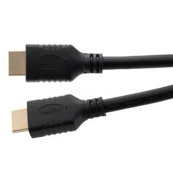 Our push-on HDMI cord from L-com has a male-to-male gender configuration with PVC strain relief materials. This straight-wired HDMI cable can be used with signal extenders to boost the AV signal over longer distances. The HD1428-25F HDMI high-speed cable supports the most modern displays and interfaces. This round black high-speed cable comes in a length of 25 feet, which is a longer length for greater signal reach.