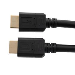 Our push-on HDMI cord from L-com has a male-to-male gender configuration with PVC strain relief materials. This straight-wired HDMI cable can be used with signal extenders to boost the AV signal over longer distances. The HD4K26-50F HDMI high-speed cable supports the most modern displays and interfaces. This round black high-speed cable comes in a length of 50 feet, which is a longer length for greater signal reach.