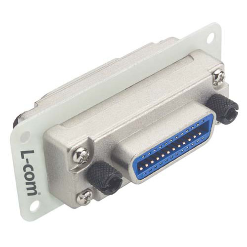 These innovative bulkhead adapters allow the user to pass GPIB cables through a panel or enclosure. The reverse entry feature allows cables to exit in opposite directions. Utilizing a unique steel/nickel plated mounting flange and cast aluminum connector housing, these adapters are built to last. A fiberglass insulated version also exists for users concerned with ground loops. Quantity pricing available, please contact your L-com Sales Representative.