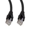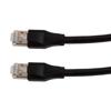 Our TMD19014014046-015F Ethernet data cable assembly has an SF/UTP double shielded foil + braid shielded design which reduces EMI/RFI interference. The Category 5e Ethernet data cable assembly has 26 AWG stranded flexible conductors. Our double shielded Category 5e cable assembly is suitable for industrial Ethernet, 10/100BASE-TX, factory automation including high flex and continuous motion, process industry, and harsh environment applications. This Cat5e Ethernet cable with a 26 AWG stranded conductor is black in color. Our stranded black Category 5e Ethernet data cable is 15 feet long.