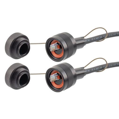 • This assembly consists of a Ruggedized RJ45 Plug to a Ruggedized RJ45 Plug, both utilizing an Anodized Aluminum finish