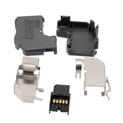 In stock and ready to ship today, L-com's IXP-SRAD-A Cat6a, 10 position, ix Industrial plug is designed for high speed applications where tough, shielded connectors are required when an ordinary RJ45 won't cut it. The IXP-SRA series 10gig ix Industrial connectors are next generation Ethernet plugs that are 75% smaller than a typical RJ45 with up or down angles for extra space saving and careful cable management. This allows for parallel 10mm pitch mounting which is ideal for daisy-chaining and connector dense applications. They have durable metal shells with high EMC resistance, a robust rating of 5,000 mating cycles and up to 10gigbit through-put for Category 6a or 7 use. High resistance to vibration and motion along with a lockdown pins contribute to a 25N disengage force which allows ix connectors to function in spaces where a standard RJ45 would fail.