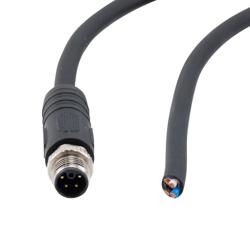 • Picture of M12 4 Position IP67 L-Code Pigtail Cable Assembly, Unshielded 16AWG PUR Jacket, Male to Open, Black 10m