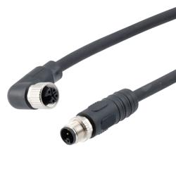 Picture of M12 4 Position IP67 L-Code Pigtail Cable Assembly, Unshielded 16AWG PUR Jacket, Male to Right Angle Female, Black 3m