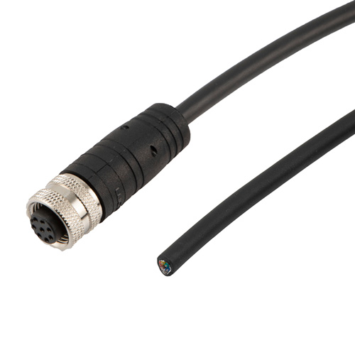 • M12 female jack connector is threaded and IP67 waterproof rated when mated properly; Pigtail end pre-cut for use in crimp, solder, spring or clamp applications