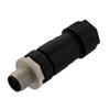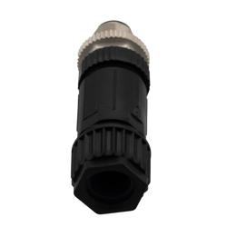 M12 AC Power 4 Pin S-Code Male Field Termination Connector, IP67, Fits 16-20AWG and 8-10mm Cable, 630V, 12A, Screw-In, Black