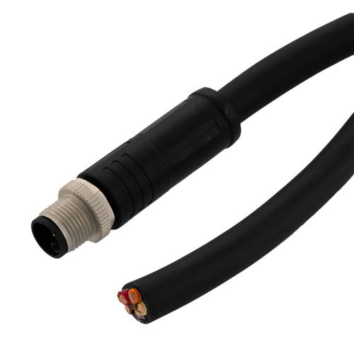 M12 AC Power Cable Assembly, 5 Position K Code, IP68 IP69K, Male to Open, 14AWG, 630V, 16A, UL 20234 TPU Jacket, Black, 1M