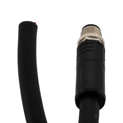The L-com TRGK504-U4B-1M is a black M12 male to open AC power cable assembly that is suitable for motors and drivers, industrial controls, factory automation, heavy machinery and material handling equipment, Power Distribution Units (PDUs), renewable energy systems, robotics, lighting systems, and charging stations. Our cable assembly with M12 connector is waterproof IP68 (1m/24hours) and IP69K rated when properly mated to protect against liquids and particulate. This M12 data cable has a length of 1 meter.
