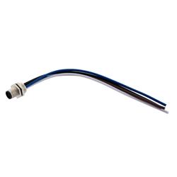 The L-com REC-M124TM-PG9R-L is a M12 sensor 4 pin T-code male receptacle that is suitable for DC motors, industrial control and factory automation, Power Distribution Units (PDUs) and power supply units, battery connections and charging stations, and renewable energy systems including solar. This T-code receptacle has a bulkhead rear mount and a blunt cut UL1015 PVC 16AWG leads in length of 0.2 meters (7.8 inches). Our data adapter is IP68 (1m/24hours) and IP69K rated when properly mated with a temperature range of -20 degrees C to +85 degrees C.