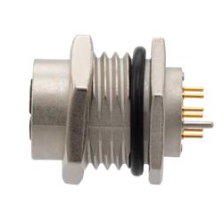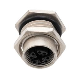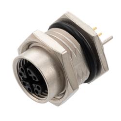 - Receptacle is M12 X-Code female/jack to straight 180° solder/PCB mount